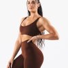 Clothing Alphalete Women Amplify Deep V Bra Manhattan Brown 686D0012 Alphalete Shorts Sale